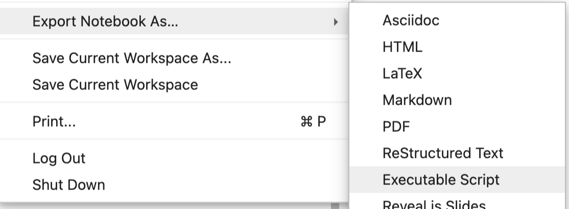 쥬피터 노트북 상단에 있는 File > Export Notebook As > Excutable script 클릭!