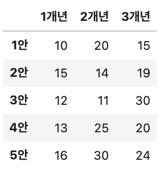 - 1개년 50억, 2개년 60억, 3개년 70억의 예산을 가지고 NPV(순현재가치)가 가장 높아지는 안을 제시하시오.