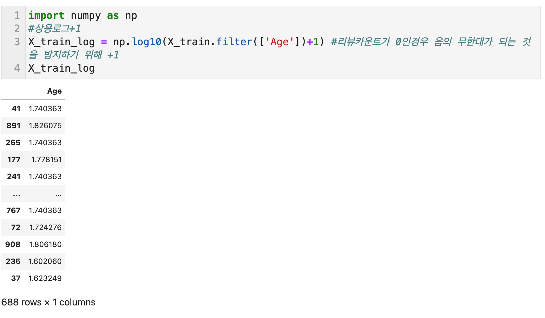 수치형 변수의 비선형변환 - 1) 로그 변환(Log Scaling) with np.log1p