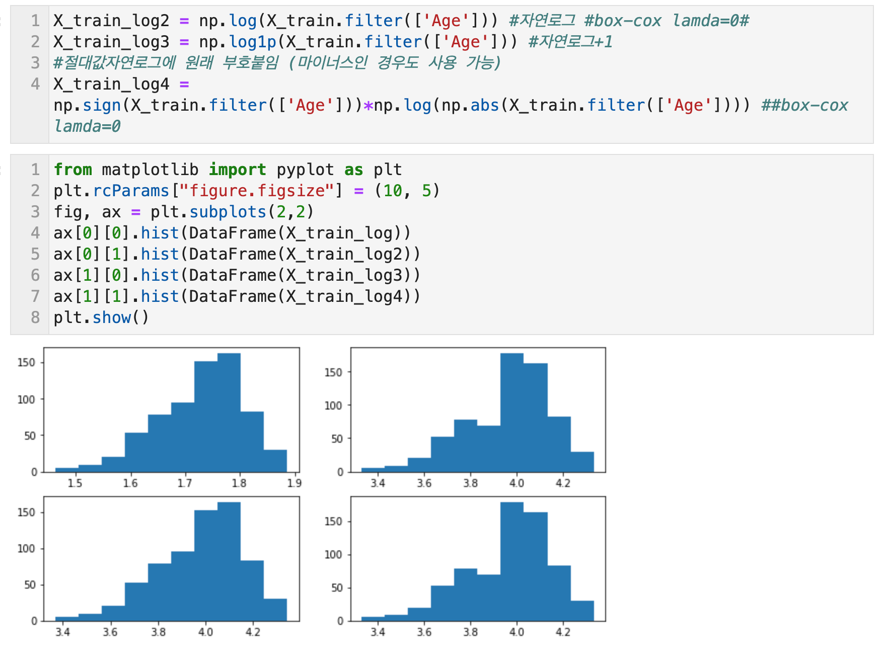 Box-cox 변환의 매개변수 람다가 0일 때가 로그 변환이다.