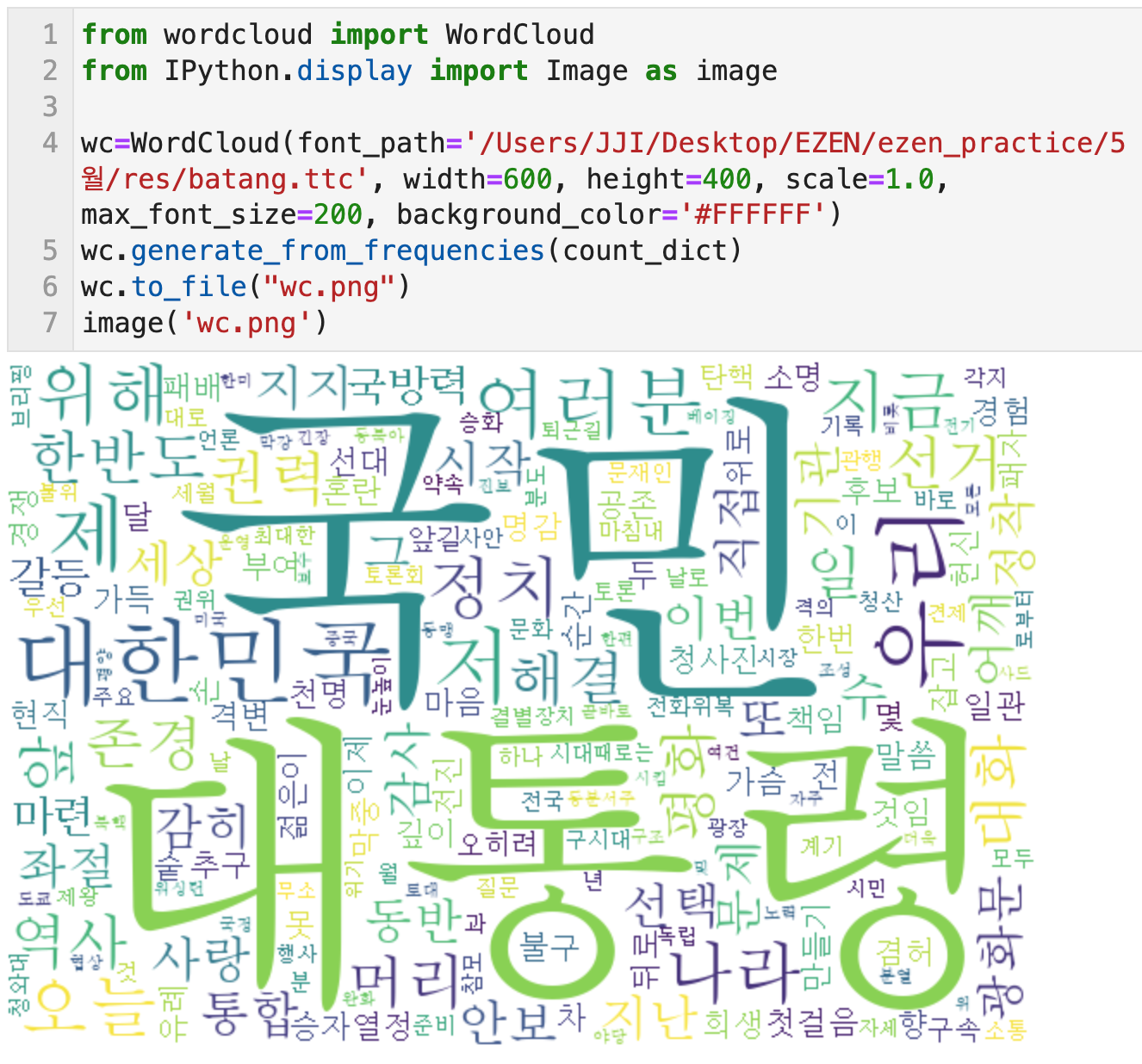 wordcloud 패키지를 사용해서 워드클라우드를 만들고, 인사이트는... 생략!